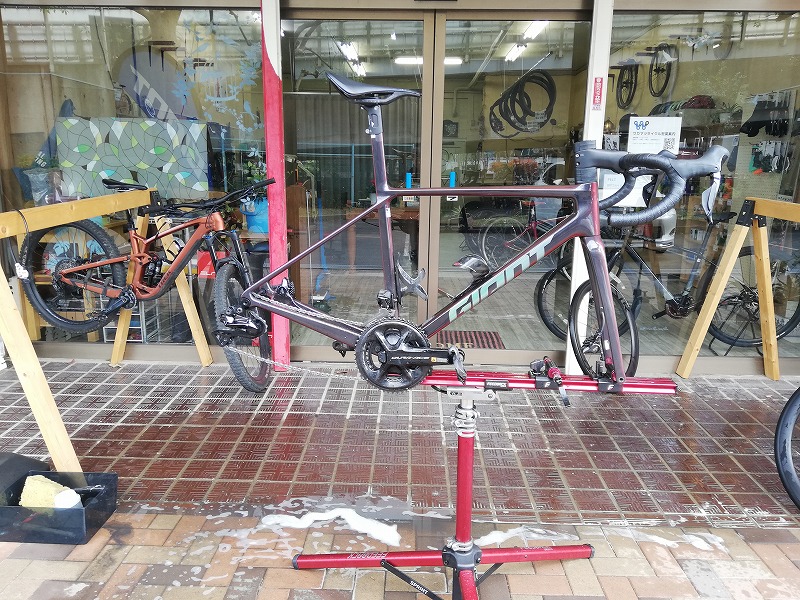 試乗車兼店主バイクであるGIANT TCR Advanced SL 0の洗車を行いました。