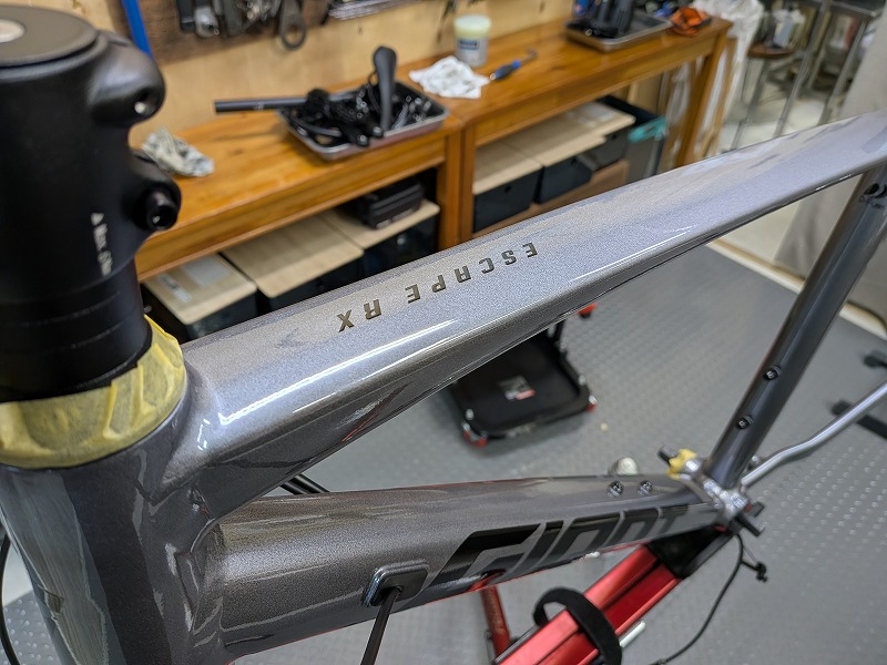 最後にフレームにワカマツサイクルステッカーを張り付けて完成です。